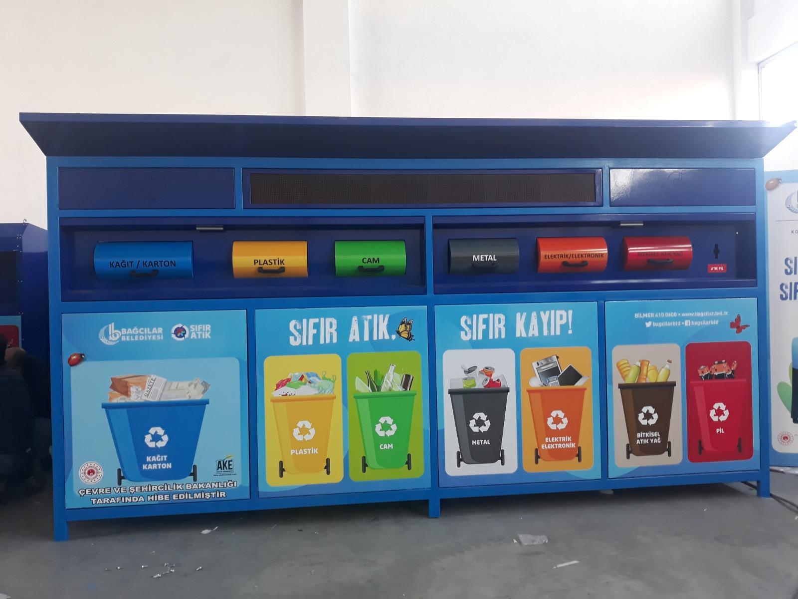 Geri kazanıbilir atıkların, diğer atıklarla karışmadan kaynağında ayrı toplanması ile geri kazanım sürecinin daha sağlıklı işlemesi amacıyla şehrin belli yerlerine konulan mobil konteynerlerdir.