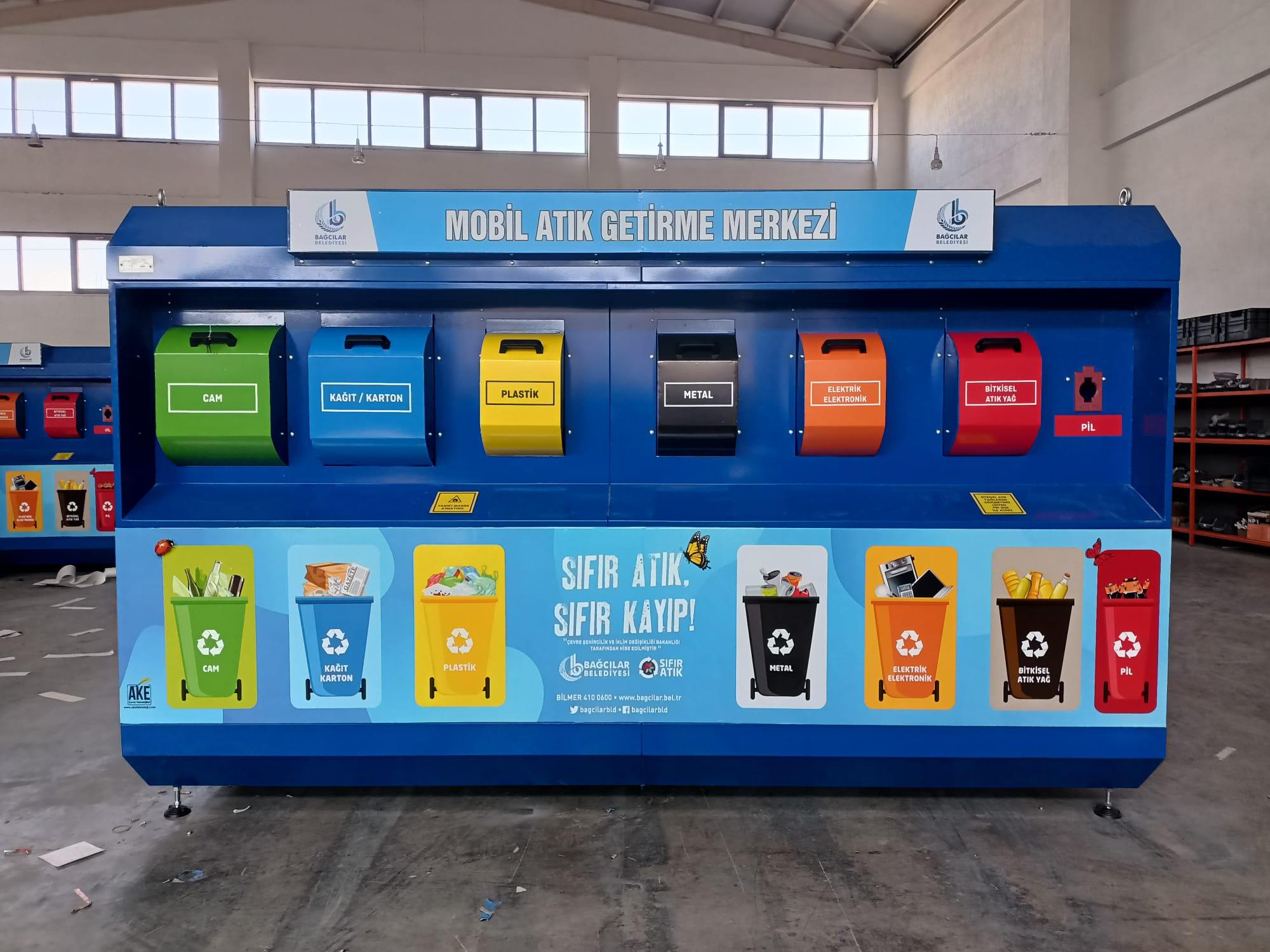 Geri kazanıbilir atıkların, diğer atıklarla karışmadan kaynağında ayrı toplanması ile geri kazanım sürecinin daha sağlıklı işlemesi amacıyla şehrin belli yerlerine konulan mobil konteynerlerdir.